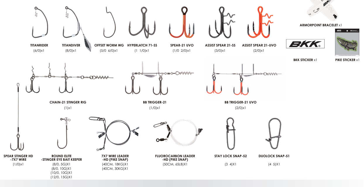 Le BKK ArmorPoint OCD Kit – Predator Pike est une solution complète pensée pour les pêcheurs ciblant les brochets trophées. Il comprend 25 boîtes regroupant 103 hameçons et accessoires haut de gamme, couvrant toutes les techniques essentielles, des swimbaits anti-herbe aux leurres souples montés sur stinger. Le kit réunit des hameçons offset, des triples, des têtes plombées, des stingers et des agrafes, tous sélectionnés pour leur solidité, leur piquant et leur fiabilité.