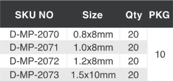 Qté (pièces par UV) : 20 Taille : 1.0 8mm |