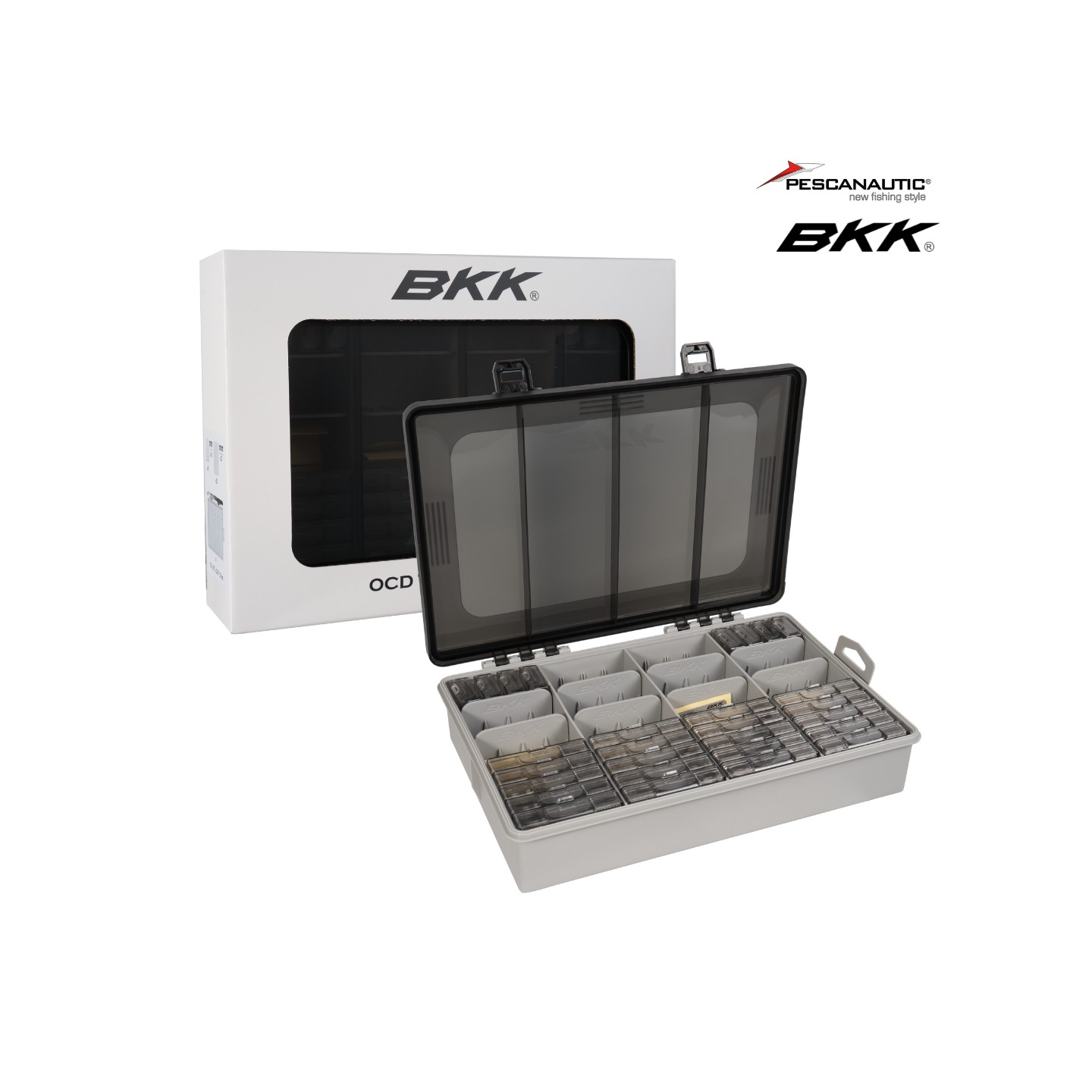 La boîte BKK OCD TACKLE SYSTEM LOADED est une boîte de rangement pour les accessoires et les petits leurres destinée aux pêcheurs en eau douce et en mer. La version BKK OCD TACKLE SYSTEM LOADED est fournie pré remplie avec des compartiments OCD ACCESSORY BOX en taille M et S. Elle contient précisément 20 boîtes M et 8 boîtes S. Il existe une autre version totalement vide qui est la BKK OCD TACKLE SYSTEM