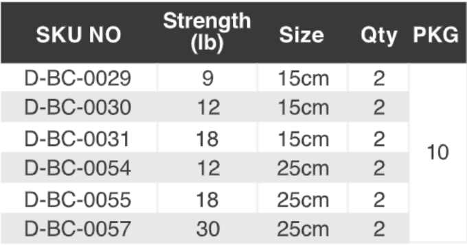 Qté (pièces par UV) : 2 Longueur : 15cm Résistance : 9kg |