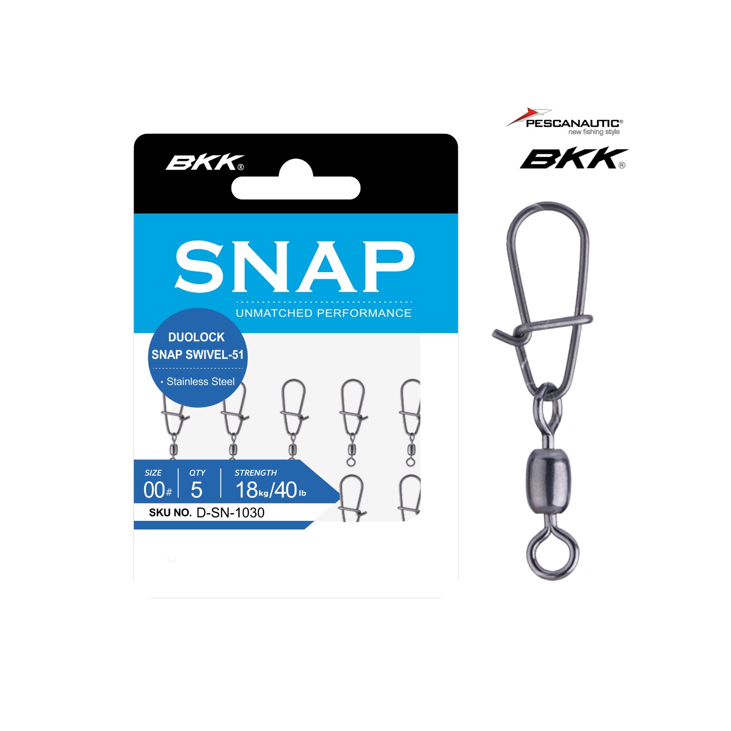Le BKK Duolock Snap Swivel 51 est doté de notre Duolock Snap original et d'un émerillon en acier inoxydable à rotation douce pour éviter les forces de torsion appliquées sur la ligne. Grâce à la robustesse de l'acier inoxydable, même les émerillons plus petits sont dotés d'une résistance remarquable, ce qui leur permet de supporter l'attraction de poissons de taille considérable.