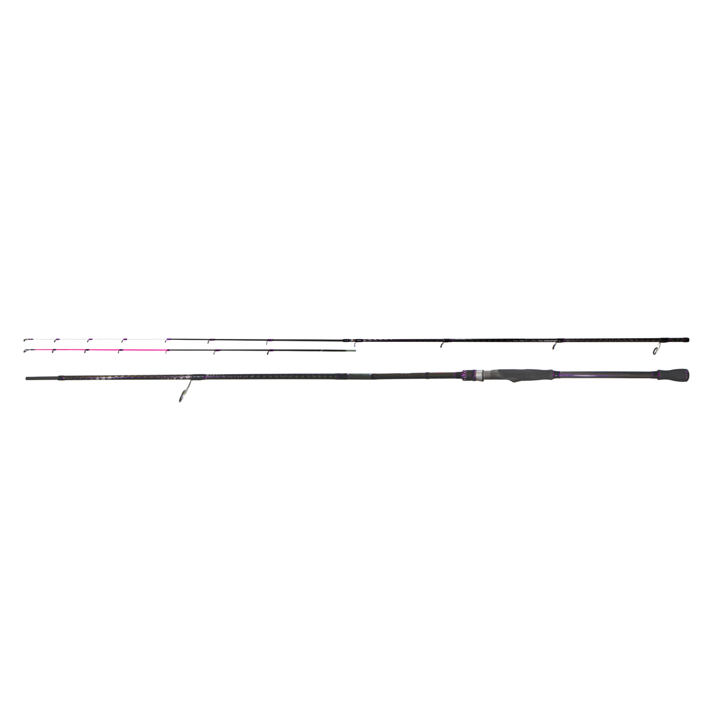 L’évolution majeure de cette version réside dans son système de scions interchangeables, qui permet d’ajuster le comportement de la canne en fonction des conditions et des préférences du pêcheur. Le Scion 3006TIP Blanc/Carbone en carbone plein privilégie la résonance et le ressenti, offrant une excellente transmission des informations et une lecture fine des touches. À l’inverse, le Scion 3006TIP Rose/Fibre mise sur la détection visuelle, avec une souplesse extrême qui favorise des animations discrètes et naturelles, tout en trompant la vigilance des poissons les plus éduqués. Cette double configuration renforce considérablement la polyvalence de la canne.