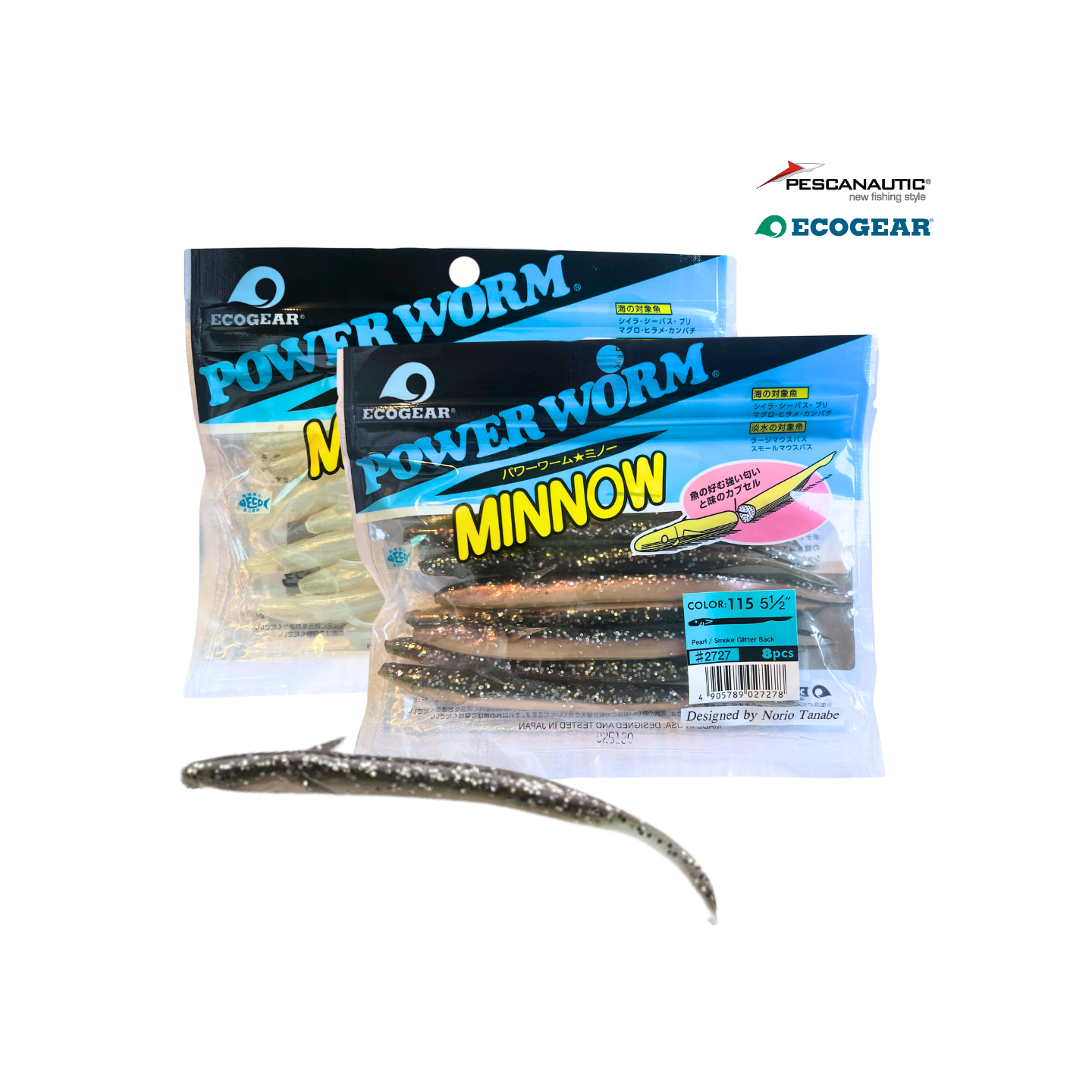 Le Power Worm Minnow est un leurre souple Ecogear conçu par Norio Tanabe qui contient des composants odorants en son coeur. Texture, odeur et goût ultra naturels rappelant ceux des véritables appâts vivants, garantissant une efficacité exceptionnelle. Testés en laboratoire et en situation réelles, destinés à la pêche en mer et en eau douce.