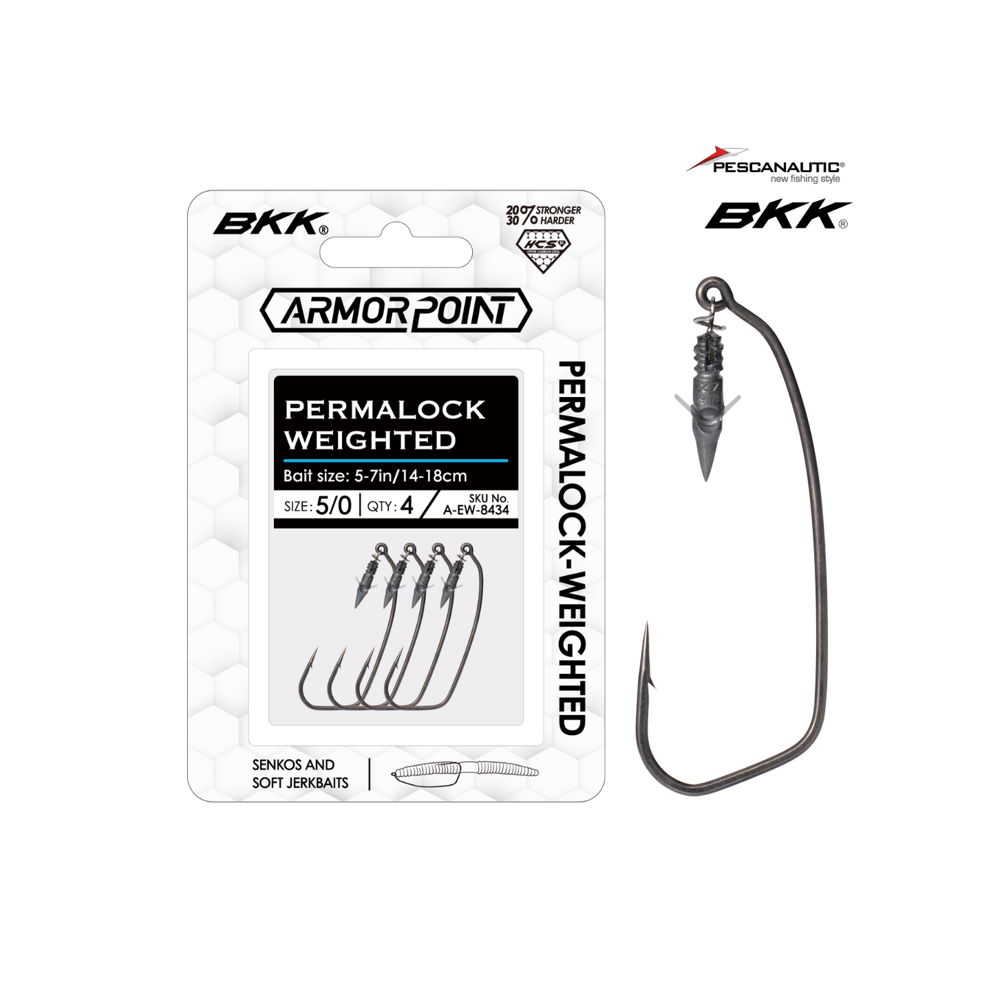 Le Permalock Weighted est l’hameçon texan idéal pour cibler le black bass avec des leurres souples tout en contrôlant parfaitement la profondeur et la nage. À la place de la vis classique, il intègre un lest en tungstène directement moulé sur la hampe, qui s’insère entièrement dans le leurre pour une discrétion parfaite.