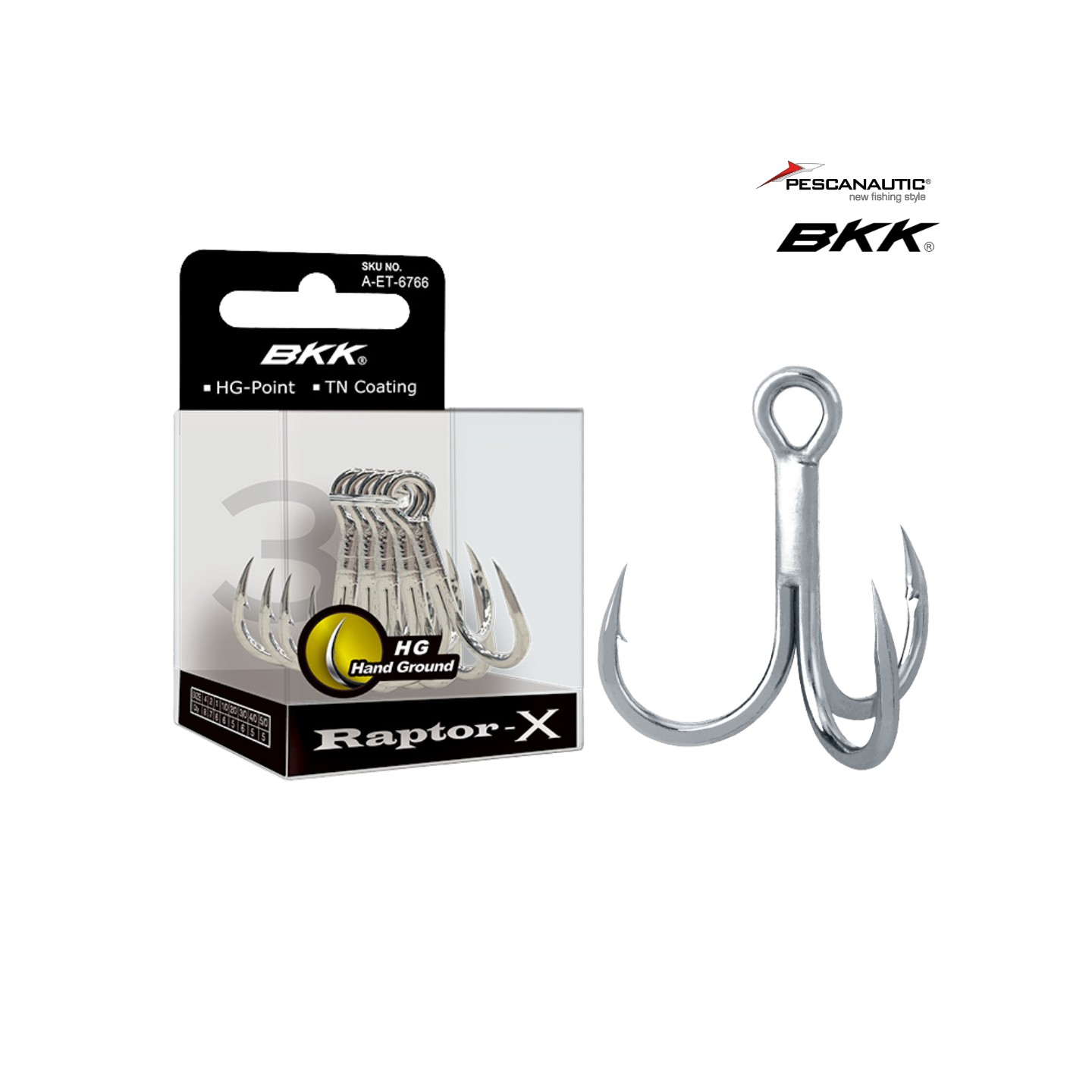 Le Raptor-X est un hameçon triple 3X dont le design est inspiré de l'un des meilleurs hameçons triples jamais lancés par BKK, le Raptor-Z. Les proportions de l'hameçon sont maintenues pour lui conférer une excellente résistance. De plus, sa pointe est légèrement redressée pour améliorer la vitesse de pénétration, renforcée par l'affûtage Hand-Ground. Grâce à son diamètre d'acier plus fin et à sa disponibilité en très petites tailles, le Raptor-X peut être adapté pour armer des leurres plus petits sans affecter leur action de nage. La légèreté de la structure de l'hameçon est également augmentée grâce au traitement Hand-Ground, qui consiste à affûter manuellement l'hameçon en enlevant de la matière autour de la pointe. Le revêtement Bright-Tin du Raptor-X vise à maximiser ses performances en termes de résistance à la corrosion de l'eau salée, le rendant ainsi adapté même aux environnements d'eau salée difficiles.