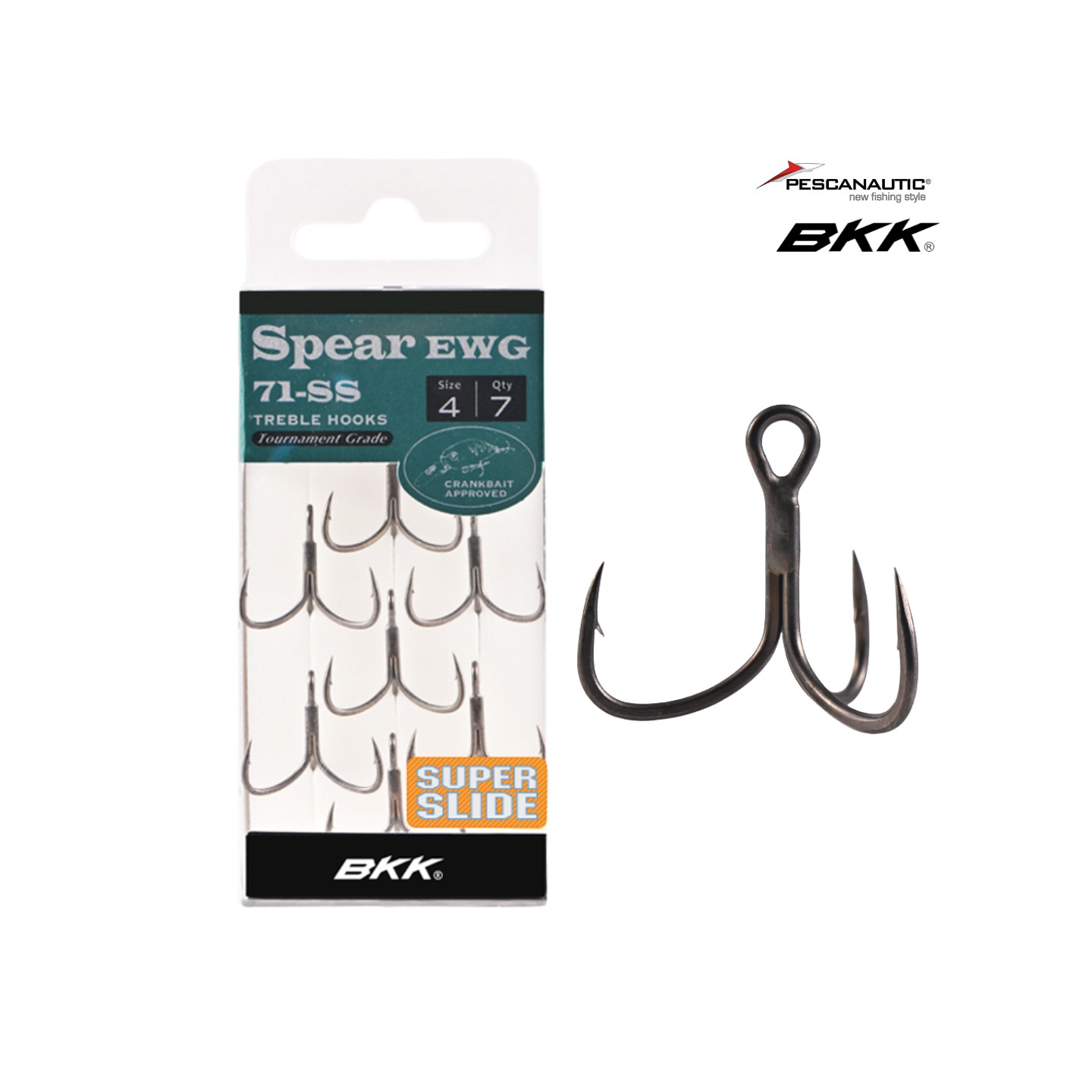 Le SPEAR EWG-71 SS est un hameçon triple de force 1X spécialement conçu pour être équipé sur des crankbaits de tous types. Sa tige plus courte lui permet de se plaquer plus près du corps de votre leurre, minimisant ainsi l'impact sur son action de nage et les risques d'accrochage. De plus, les pointes droites tournées vers l'intérieur et la conception EWG (Extra Wide Gap) réduisent le risque d'arrachement des hameçons. Le SPEAR EWG-71 SS est doté du revêtement SS signature de BKK, assurant des ferrages instantanés et maintenant la netteté des hameçons au fil du temps