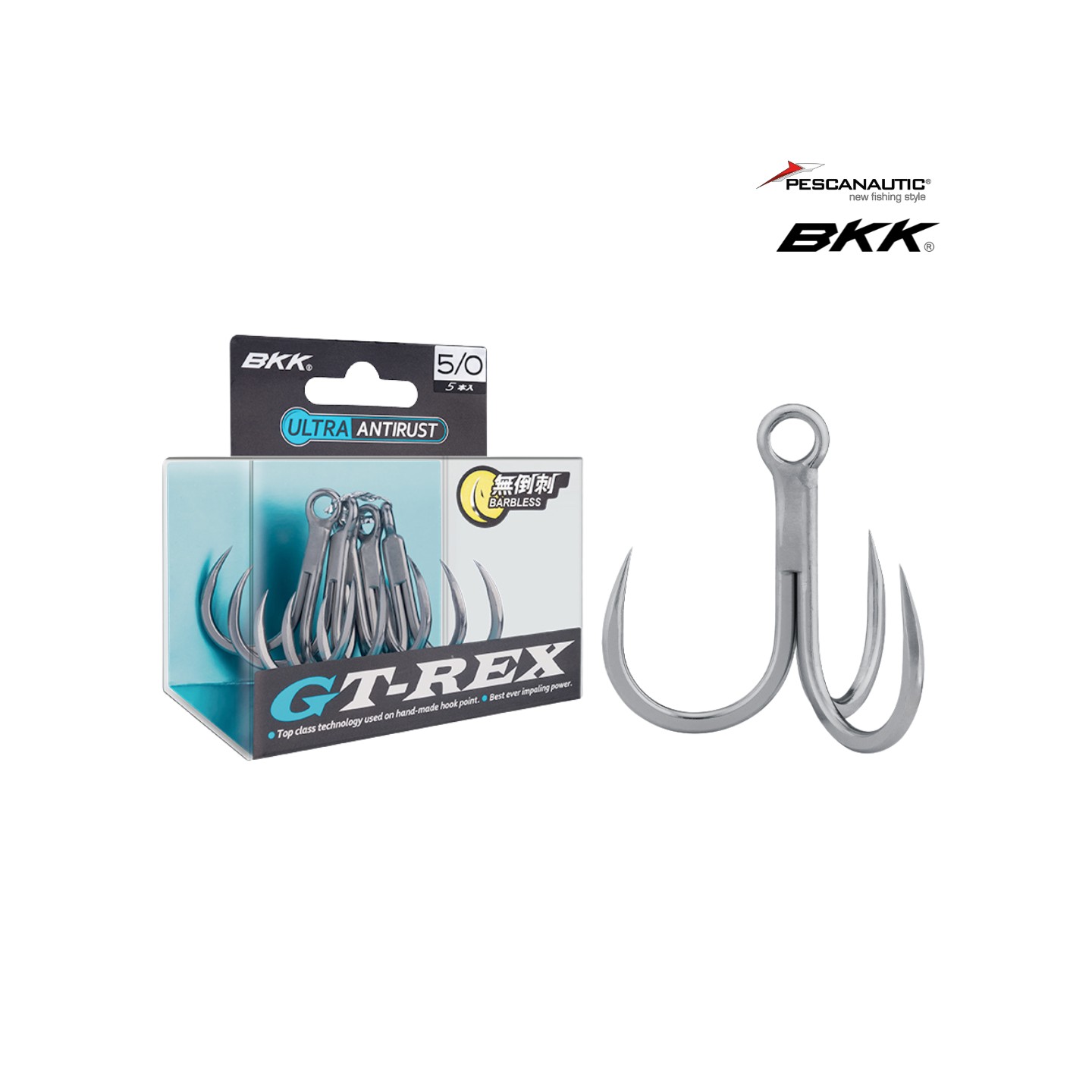 Le BKK GT-REX a été spécialement conçu pour la pêche aux carangues géantes et aux thons avec des leurres de type poppers. La version sans ardillon de ce célèbre hameçon permet d'améliorer le taux de survie du poisson lors des pratiques de "catch and release". De plus, l'utilisation d'hameçons triples sans ardillon met l'accent sur la sécurité à bord, notamment lors des lancers entre plusieurs pêcheurs, et est approuvée par les chartes de pêche.