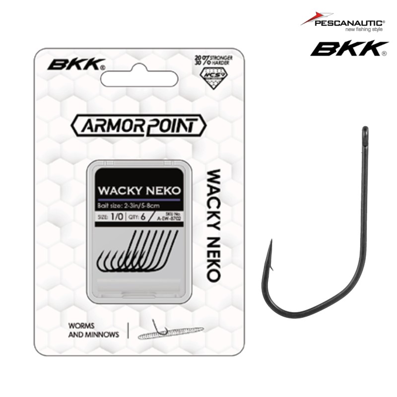 Le BKK Wacky Neko est spécialement conçu pour les techniques de pêche finesse et se montre particulièrement efficace avec les montages Wacky et Neko. Sa structure fine associée au revêtement Super Slide (SS) garantit une pénétration instantanée de l’hameçon, même lors des touches les plus légères. Fabriqué à partir de l’Hyper Carbon Steel (HCS), un acier exclusif développé par BKK, il offre une solidité remarquable pour maîtriser des poissons de grande taille. L’œillet est entièrement scellé à l’époxy, évitant tout glissement du fil et assurant une connexion plus sûre, notamment avec l’utilisation de tresses.