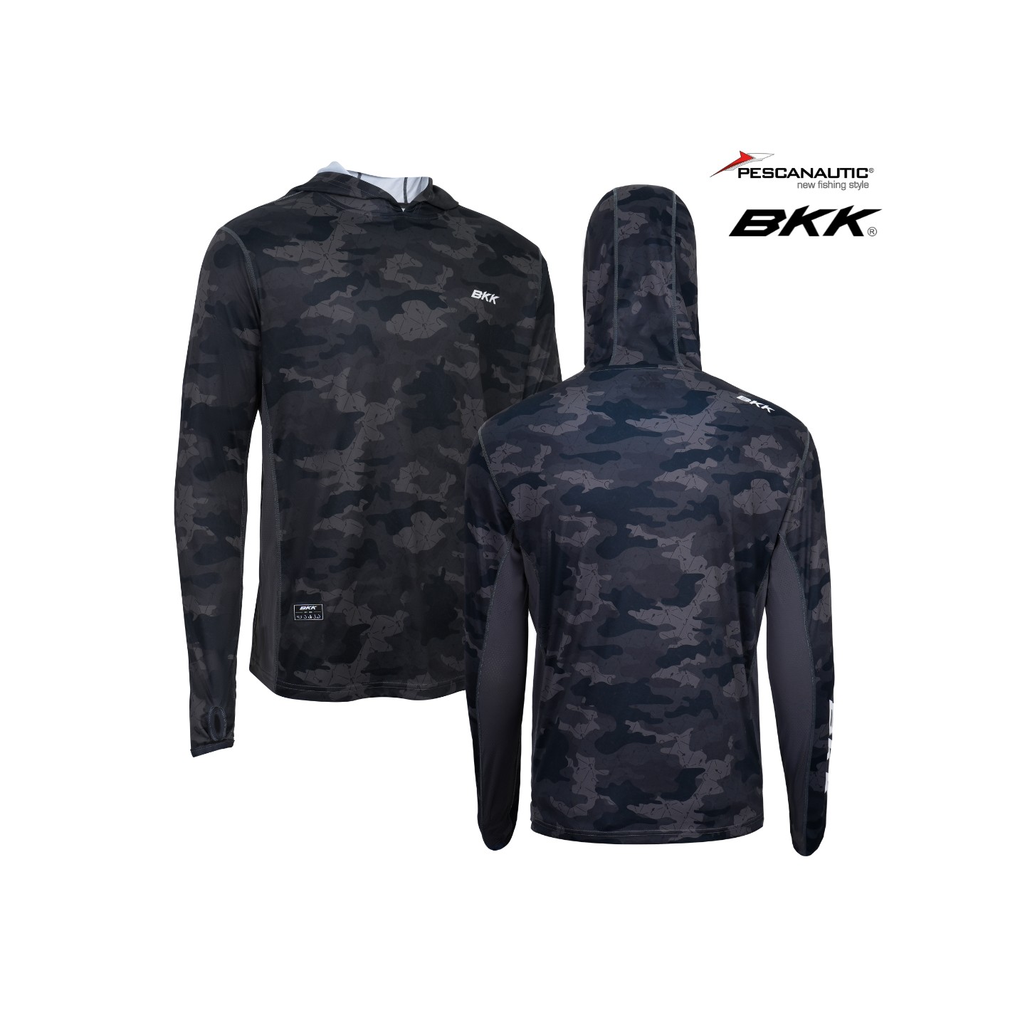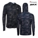 Le BKK Long Sleeve Performance Shirt à capuche combine protection solaire UPF 50+, confort respirant grâce à ses panneaux en mesh et design camouflage moderne, offrant aux pêcheurs une tenue performante et élégante pour leurs sorties en plein soleil.