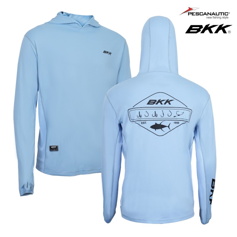 Le BKK Long Sleeve Performance Shirt à capuche combine protection solaire UPF 50+, confort respirant grâce à ses panneaux en mesh et design camouflage moderne, offrant aux pêcheurs une tenue performante et élégante pour leurs sorties en plein soleil.
